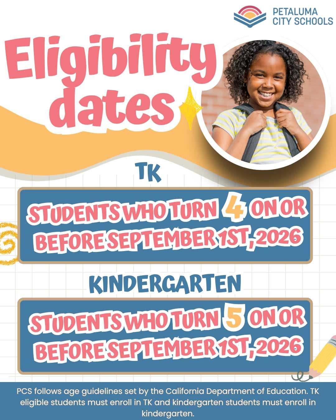 Does your child turn 4 on or before September 1st? Come meet the Petaluma City Schools' teachers and staff that make your child's first years magical at Petaluma Junior High School, 700 Bantam Way, on Thursday, December 4th at 6:00 PM.