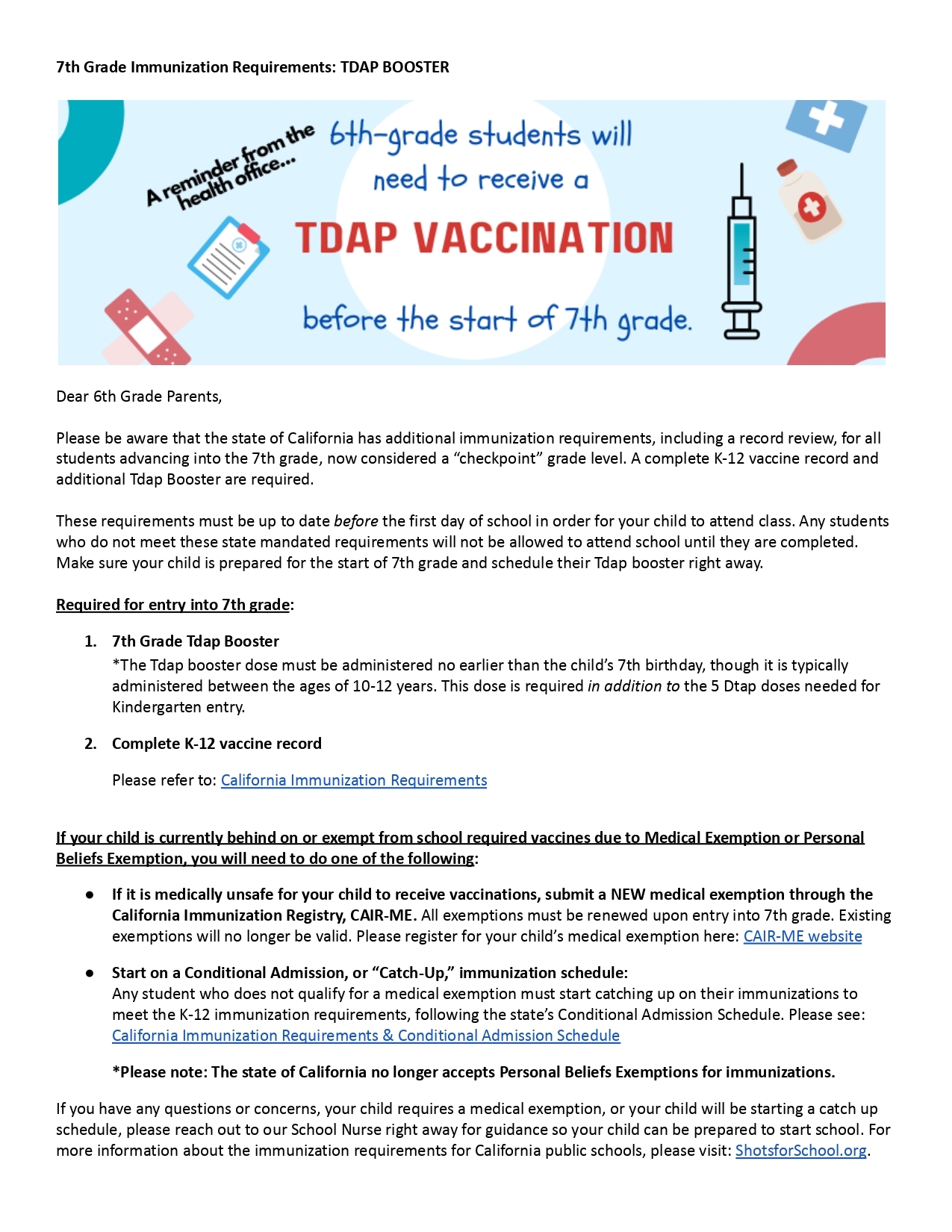 At the time of enrollment, proof of complete immunization records must be verified.